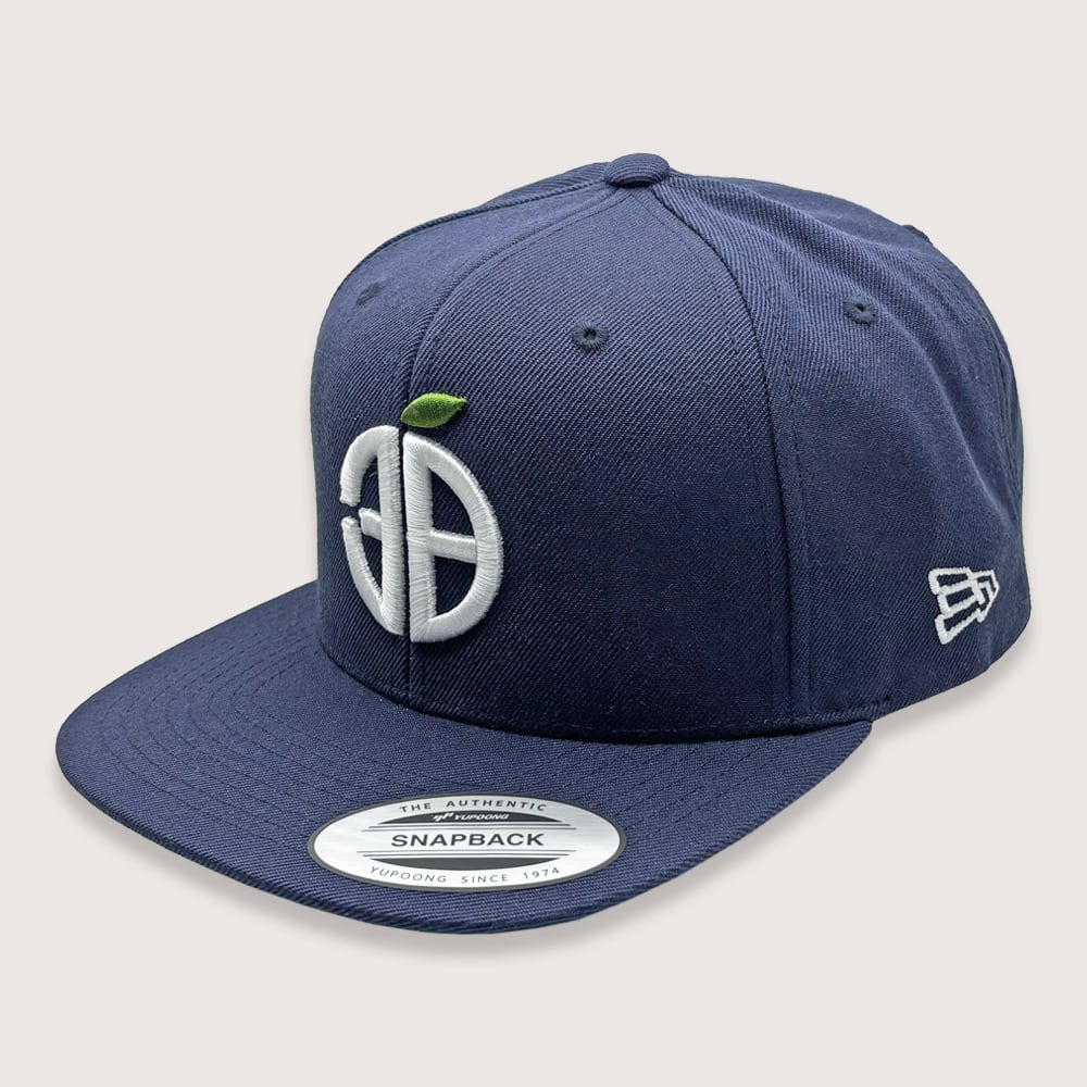 青森県三八地方をイメージしたロゴ(数字の38)を正面に立体刺繍、左側面には漢字の三八を文字った刺繍を入れたスナップバックキャップです。